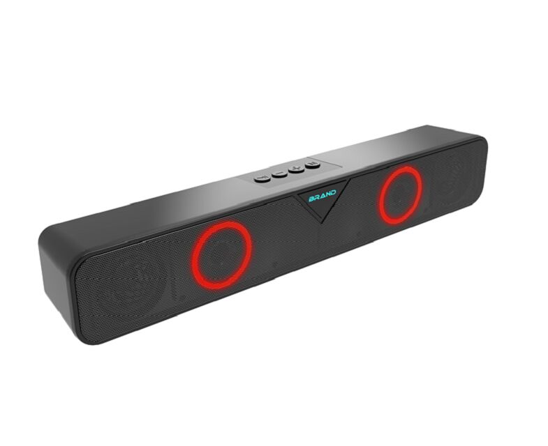 Συγκινητική λαμπερή ηχητική γραμμή με διπλό driver πλήρους εμβέλειας 2 ιντσών (5W × 2 RMS) και διπλό αεραγωγό μπάσου για βελτιωμένη ανταπόκριση χαμηλού επιπέδου.35 Hz ̇ 16 kHz με διαχωρισμό καναλιών > 88 dB για καθαρή στερεογραφίαΑυτή η λαμπερή μπάρα ήχου έχει ενσωματωμένη μπαταρία 1200mAh (DC 5V εισροή) που επιτρέπει την ασύρματη αναπαραγωγή για 3 ̇ 5 ώρες.Κάρτα TFΑυτό το λαμπερό soundbar εμπρόσθιο σιδερένιο πλέγμα και το λογότυπο εκπέμπουν προσαρμόσιμο RGB περιβάλλοντα φως κατά τη διάρκεια της λειτουργίας.Ελαφρύ μέγεθος (381×83×78mm) ταιριάζει τέλεια κάτω από οθόνες ή σε επιφάνειες εργασίας, ταινίες, μουσική, και ως ένα κομψό δώρο.